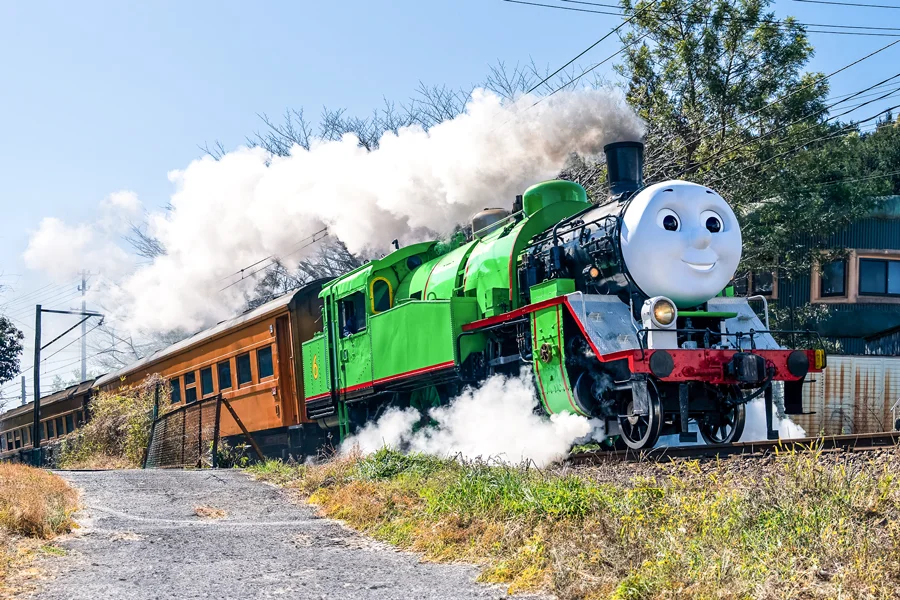 乗車時間は片道約40分、往復で約1時間半。車内ではきかんしゃパーシー号の汽笛や車内アナウンス、トーマス弁当や限定グッズ販売もお楽しみに!